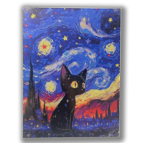 نقاشی الماسی - تابلو الماسی - diamond painting - تابلو گربه - طرح شب پرستاره - نقاشی الماسی گربه - سایز 30x40 - کد C3404 - هدیه هنری - کاردستی الماسی - تابلو تزئینی - نقاشی با سنگ ریز - تابلو درخشان - دکوراسیون منزل - هنر درمانی - سرگرمی خلاقانه -